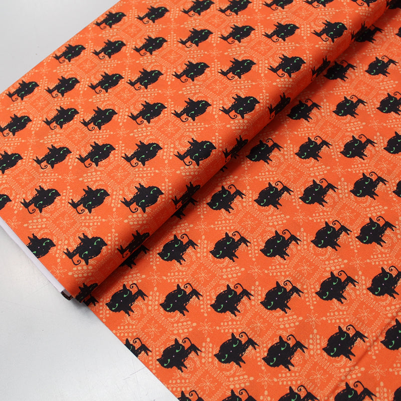 Halloween Printed Cotton - Lucky Black Cat - Orange