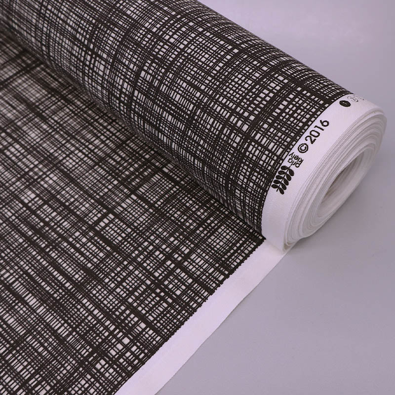 An unusual dark grey Orla Kiely fabric with a scribbled square design, which complements some of her other furnishing fabrics beautifully such as the Orla Kiely Rosebud design which we also stock.